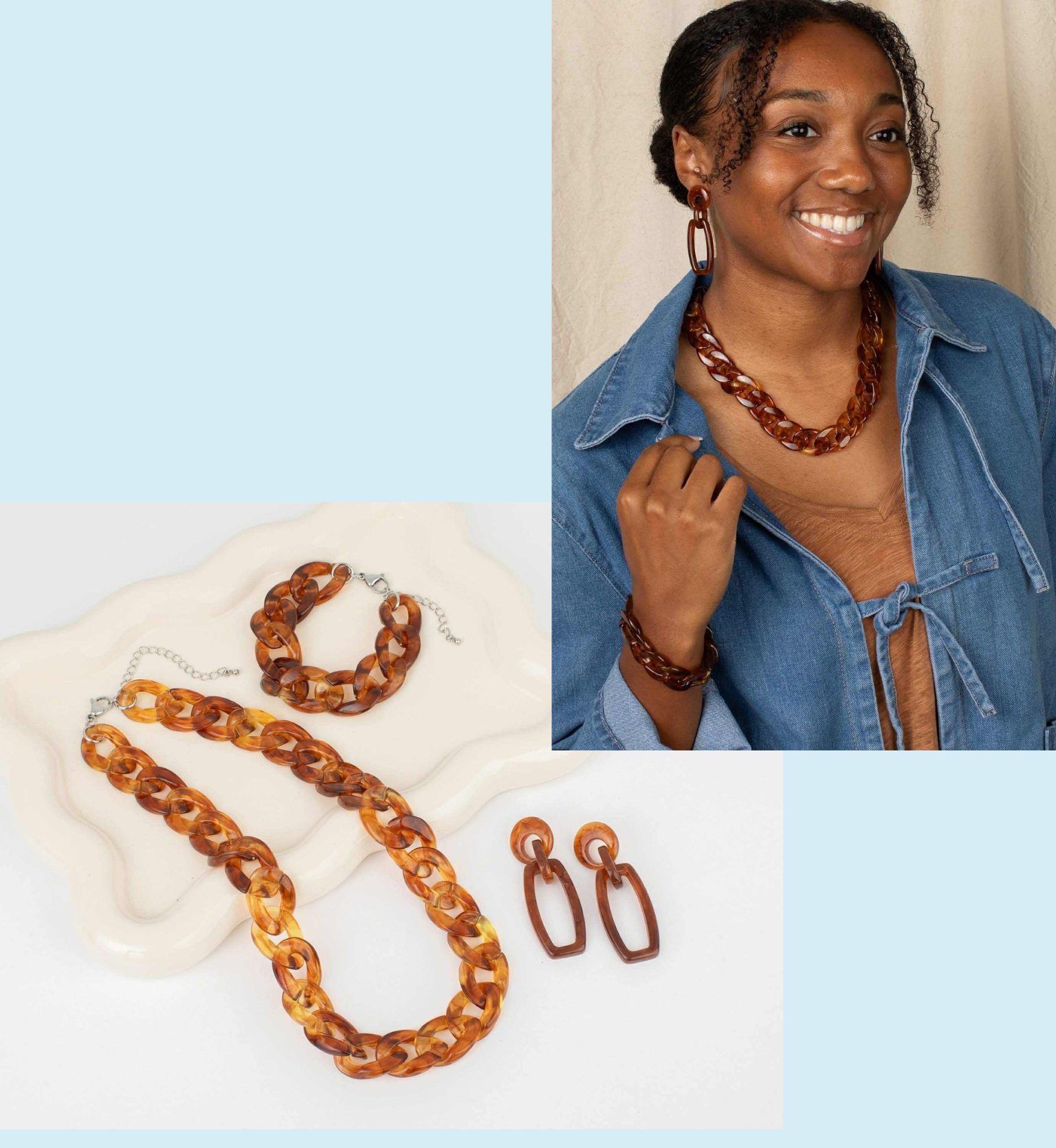 • Acrylic necklace is 20″-23″ and Nickel Safe.